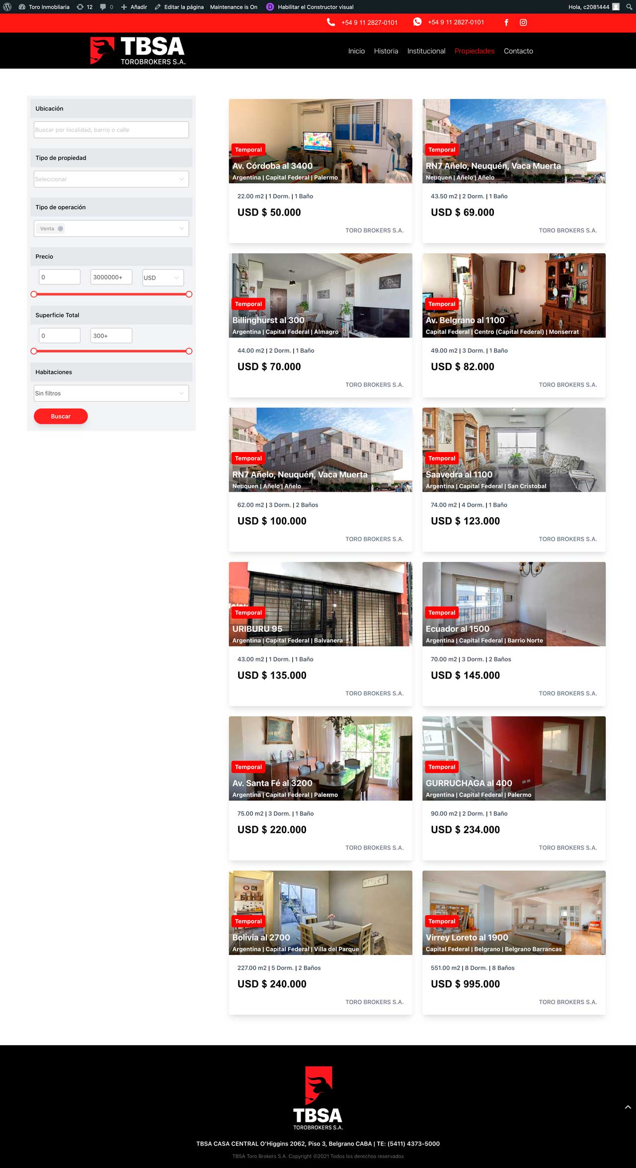 Real Estate Website integrated with Tokko Broker to bring into the divi builder filters and list of real estate items.
